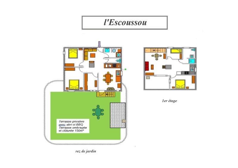 - Espace repas protégé et ombragé avec table, bancs et barbecue